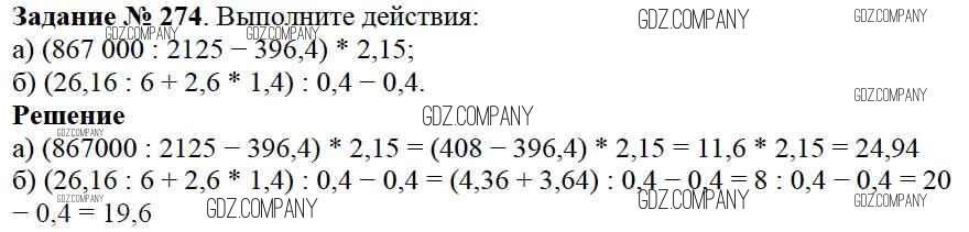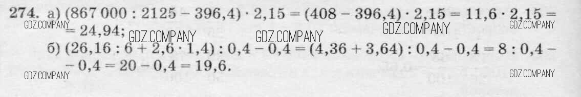 Здесь готовые ответы по Математике за 6 (шестой) класс от Виленкин, Жохов, Чесноков, Шварцбурд Учебник (издательство: Мнемозина от 2014 г.) № 274