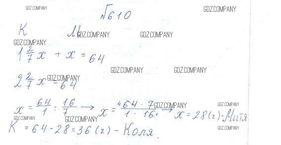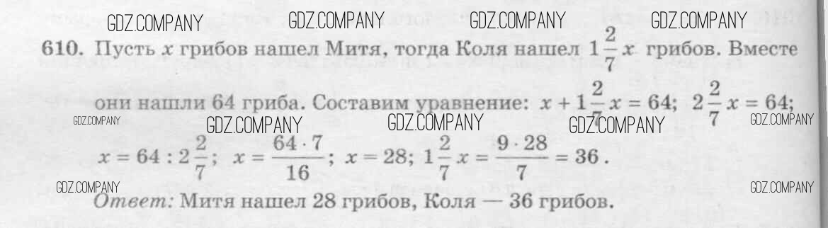 Здесь готовые ответы по Математике за 6 (шестой) класс от Виленкин, Жохов, Чесноков, Шварцбурд Учебник (издательство: Мнемозина от 2014 г.) № 610