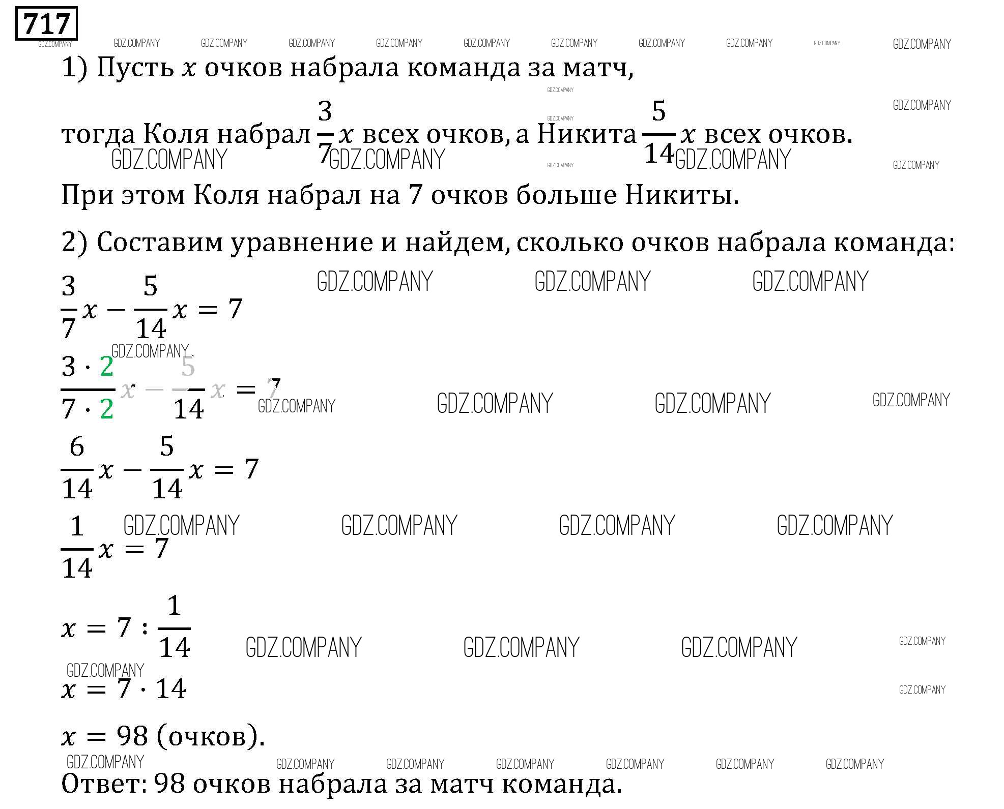 Здесь готовые ответы по Математике за 6 (шестой) класс от Виленкин, Жохов, Чесноков, Шварцбурд Учебник (издательство: Мнемозина от 2014 г.) № 717