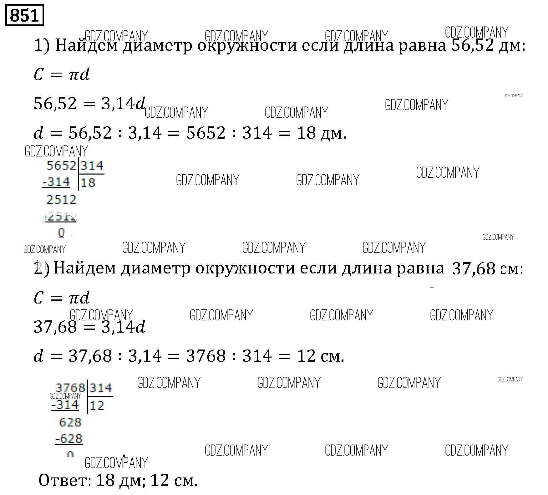 Здесь готовые ответы по Математике за 6 (шестой) класс от Виленкин, Жохов, Чесноков, Шварцбурд Учебник (издательство: Мнемозина от 2014 г.) № 851