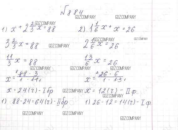 Здесь готовые ответы по Математике за 6 (шестой) класс от Виленкин, Жохов, Чесноков, Шварцбурд Учебник (издательство: Мнемозина от 2014 г.) № 884