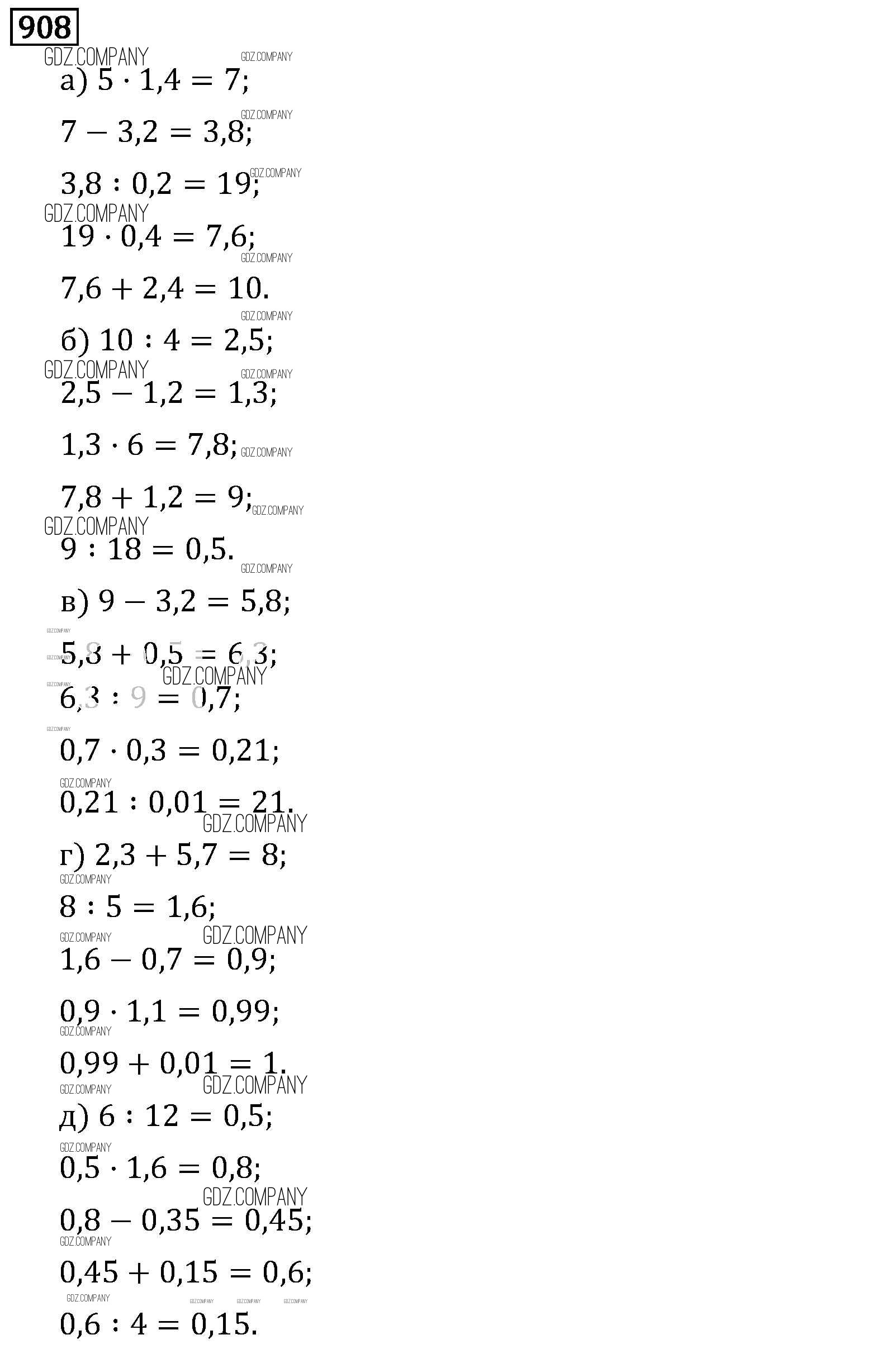 Здесь готовые ответы по Математике за 6 (шестой) класс от Виленкин, Жохов, Чесноков, Шварцбурд Учебник (издательство: Мнемозина от 2014 г.) № 908