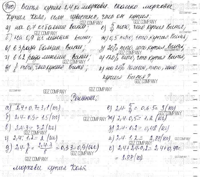 Здесь готовые ответы по Математике за 6 (шестой) класс от Виленкин, Жохов, Чесноков, Шварцбурд Учебник (издательство: Мнемозина от 2014 г.) № 940