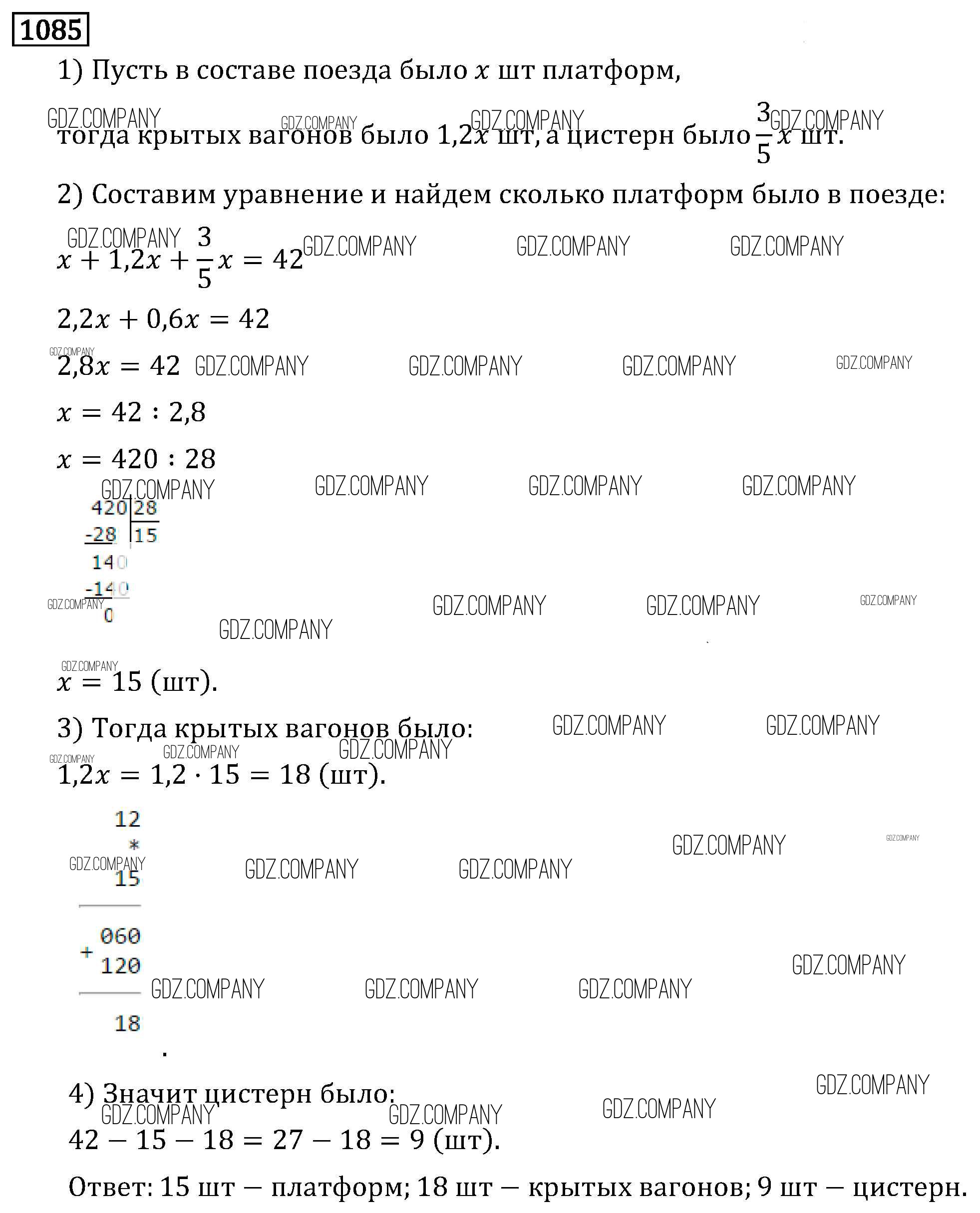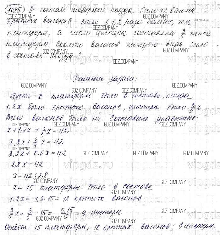 Здесь готовые ответы по Математике за 6 (шестой) класс от Виленкин, Жохов, Чесноков, Шварцбурд Учебник (издательство: Мнемозина от 2014 г.) № 1085