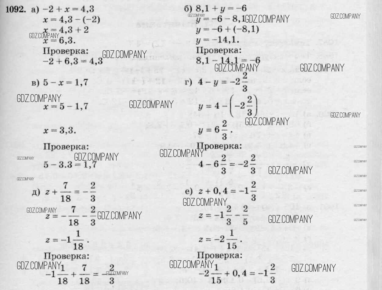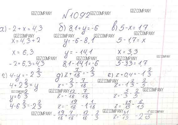 Здесь готовые ответы по Математике за 6 (шестой) класс от Виленкин, Жохов, Чесноков, Шварцбурд Учебник (издательство: Мнемозина от 2014 г.) № 1092