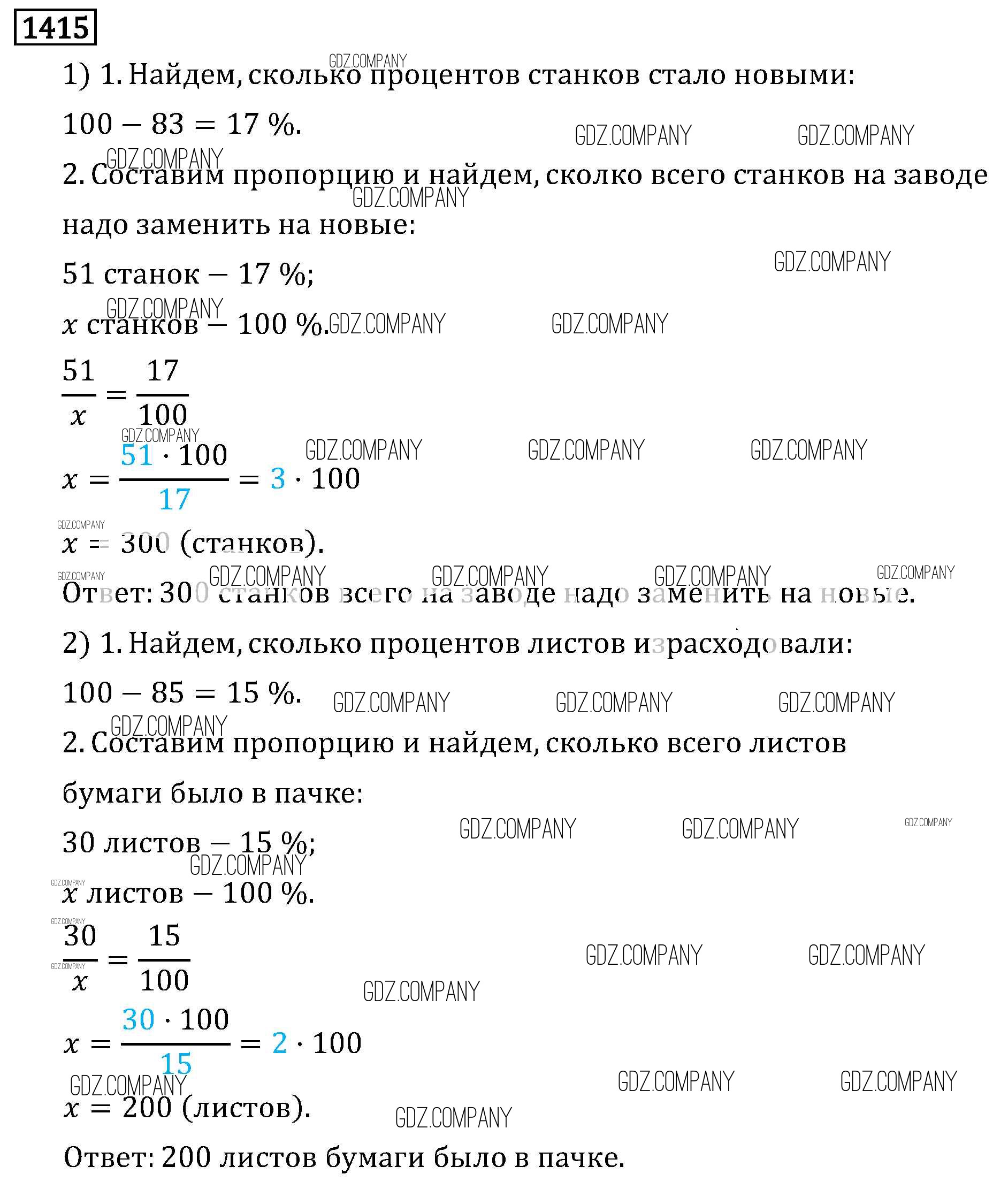 Здесь готовые ответы по Математике за 6 (шестой) класс от Виленкин, Жохов, Чесноков, Шварцбурд Учебник (издательство: Мнемозина от 2014 г.) № 1415
