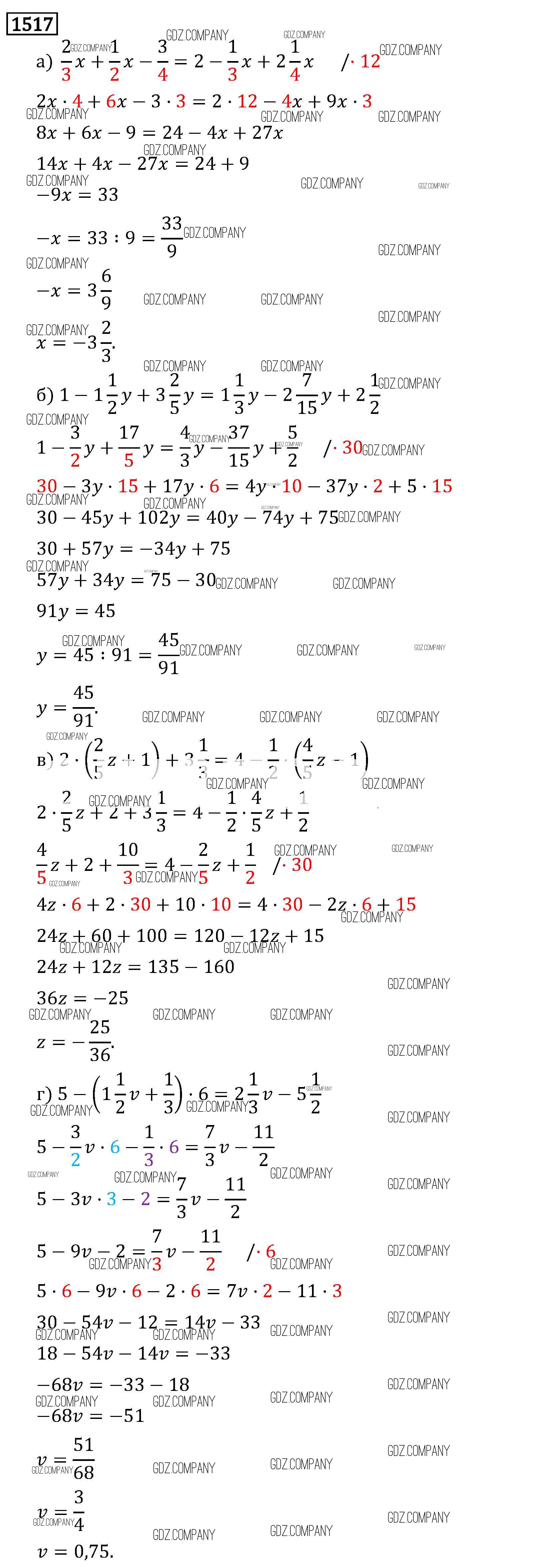 Здесь готовые ответы по Математике за 6 (шестой) класс от Виленкин, Жохов, Чесноков, Шварцбурд Учебник (издательство: Мнемозина от 2014 г.) № 1517