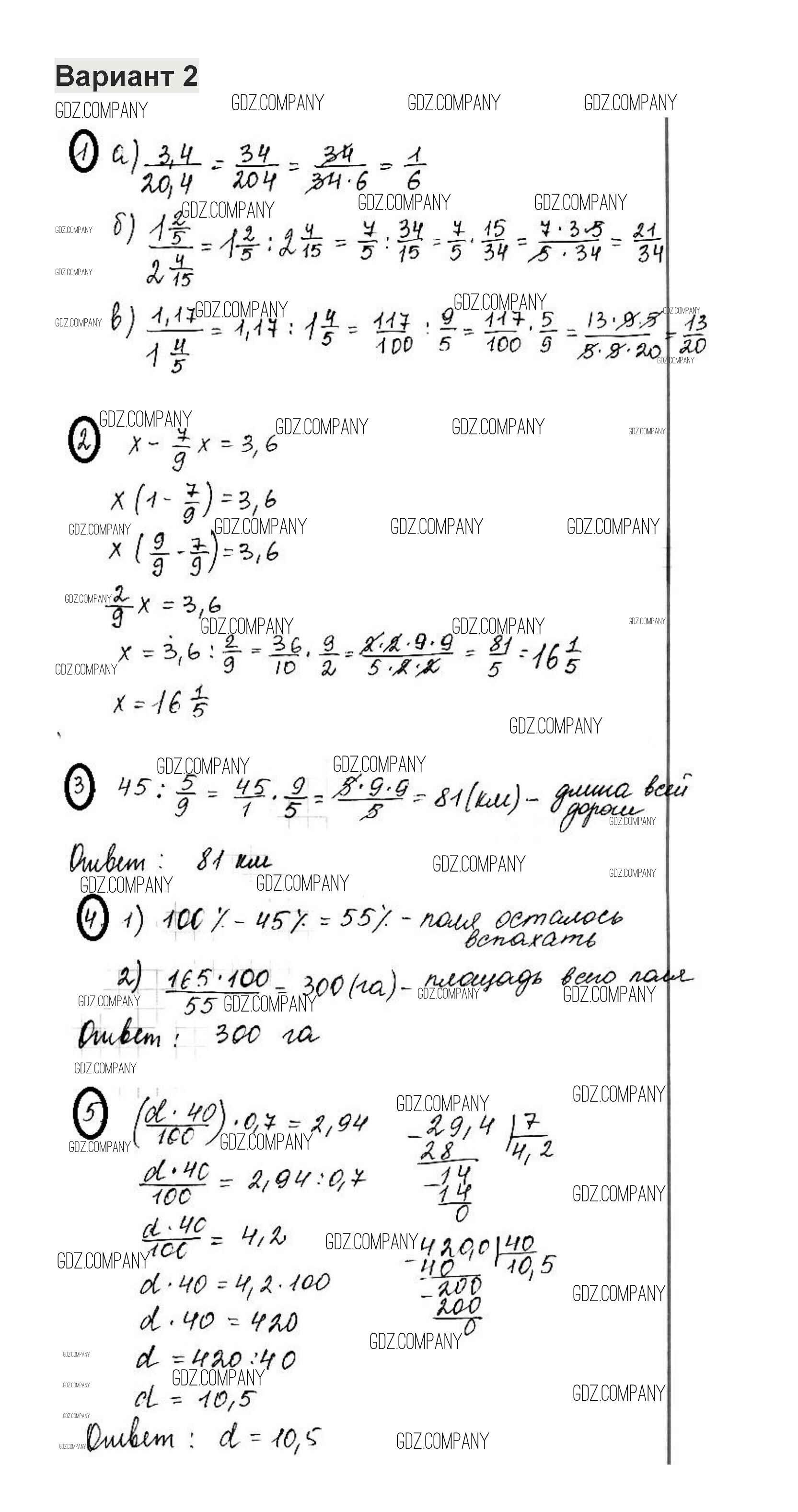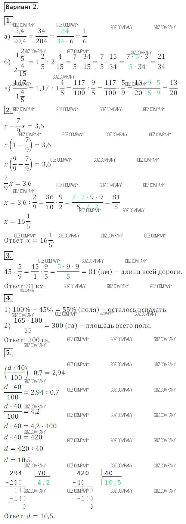 Здесь готовые ответы по Математике за 6 (шестой) класс от Жохов, Крайнева Контрольные работы (издательство: Мнемозина от 2011 г.) № 2