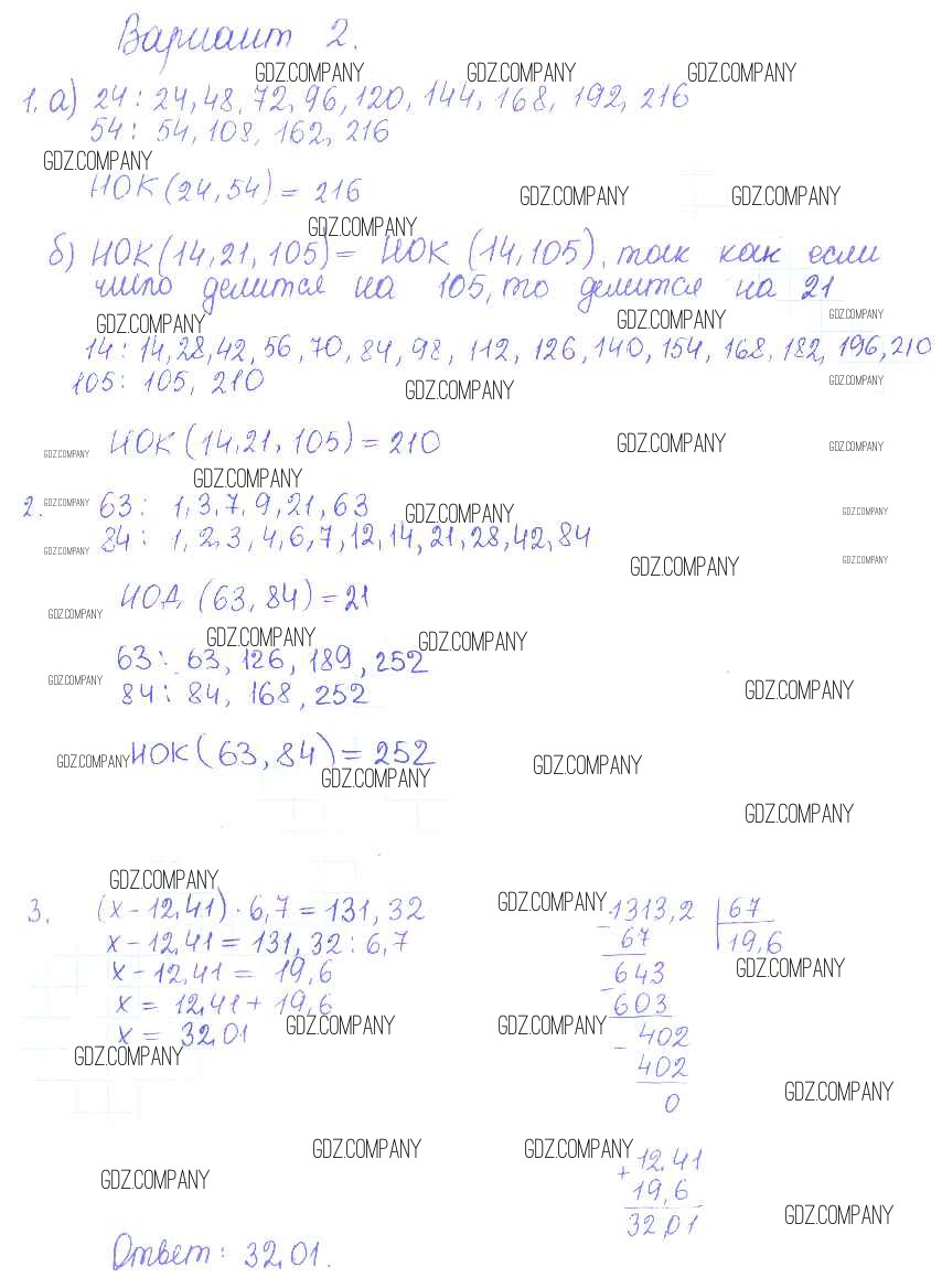 Здесь готовые ответы по Математике за 6 (шестой) класс от Журавлев, Изотова, Киреева Контрольные и самостоятельные работы УМК (издательство: Экзамен от 2015 г.) № 2
