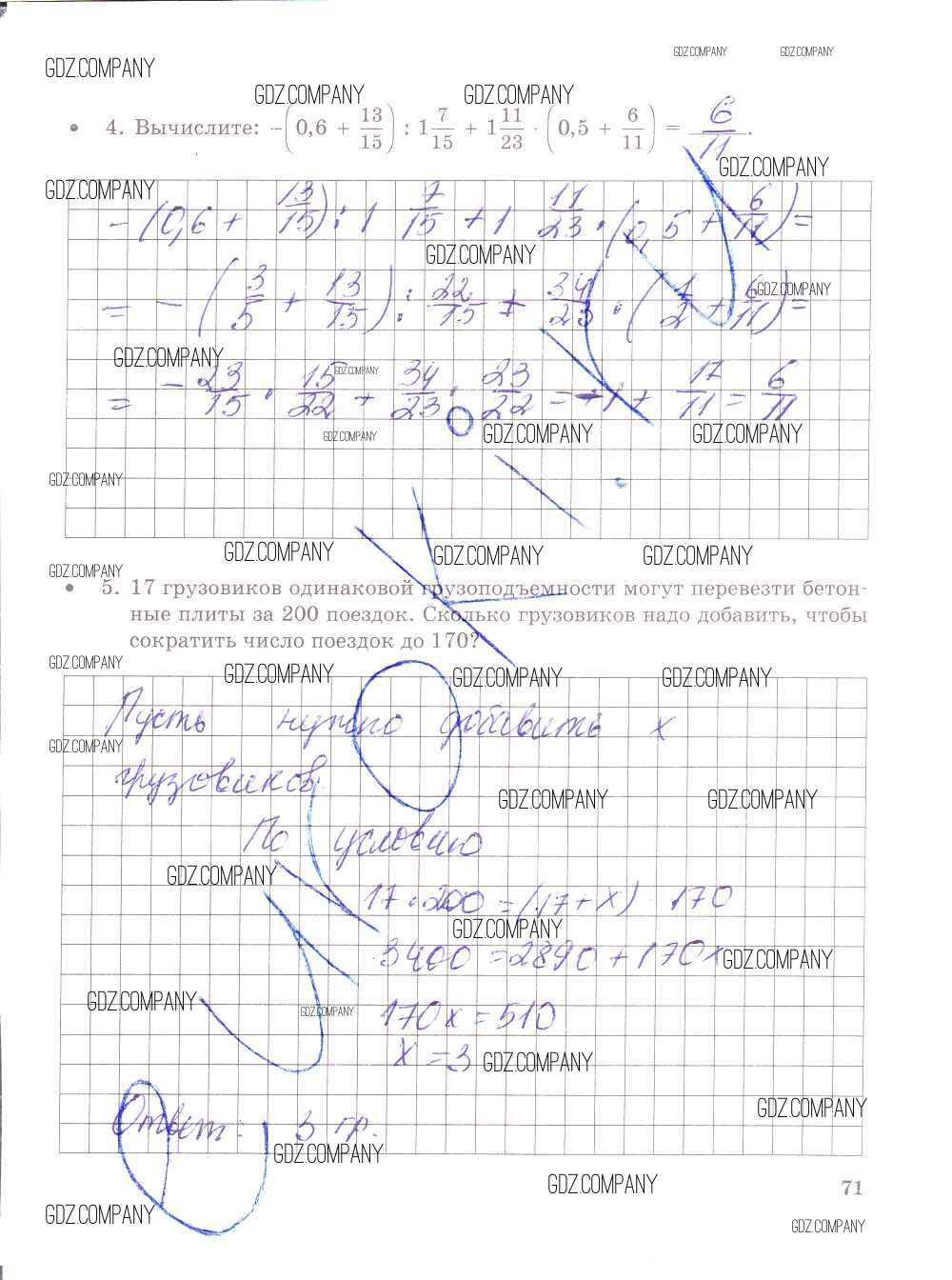 Здесь готовые ответы по Математике за 6 (шестой) класс от Зубарева, Лепешонкова Тетрадь для контрольных работ (издательство: Мнемозина от 2020 г.) № 71