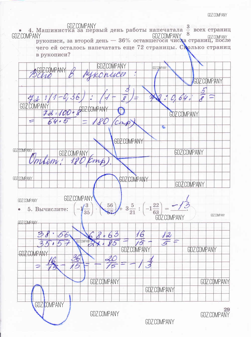 Здесь готовые ответы по Математике за 6 (шестой) класс от Зубарева, Лепешонкова Тетрадь для контрольных работ (издательство: Мнемозина от 2020 г.) № 29