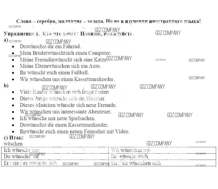 Здесь готовые ответы по Немецкому языку за 6 (шестой) класс от Бим, Фомичева Рабочая тетрадь (издательство: Просвещение от 2008 г.) № 1