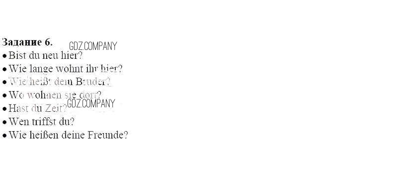 Здесь готовые ответы по Немецкому языку за 6 (шестой) класс от Радченко, Хебелер Рабочая тетрадь Alles Klar! (издательство: Дрофа от 2015 г.) № 6