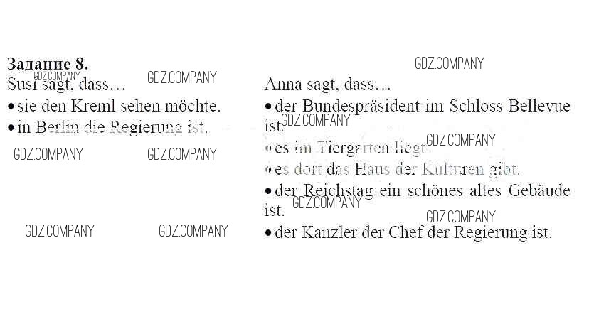 Здесь готовые ответы по Немецкому языку за 6 (шестой) класс от Радченко, Хебелер Рабочая тетрадь Alles Klar! (издательство: Дрофа от 2015 г.) № 8