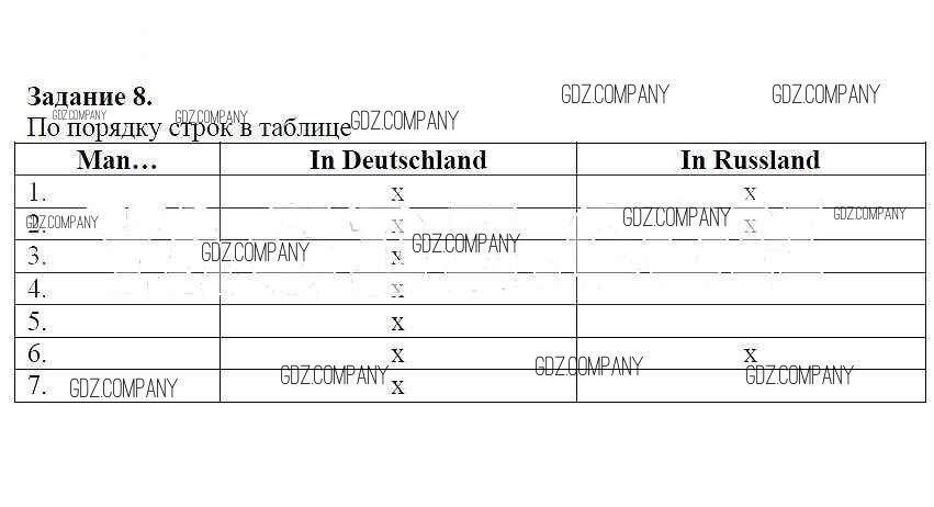 Здесь готовые ответы по Немецкому языку за 6 (шестой) класс от Радченко, Хебелер Рабочая тетрадь Alles Klar! (издательство: Дрофа от 2015 г.) № 8
