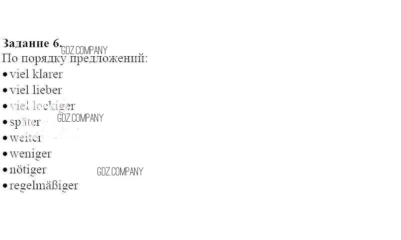 Здесь готовые ответы по Немецкому языку за 6 (шестой) класс от Радченко, Хебелер Учебник Alles Klar! (издательство: Дрофа от 2014 г.) № 6