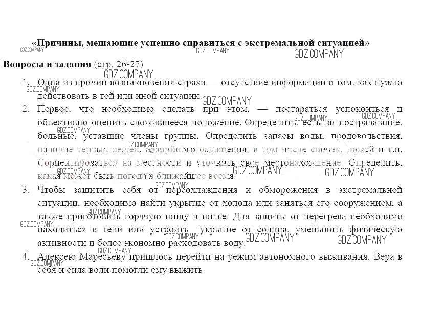 Здесь готовые ответы по ОБЖ за 6 (шестой) класс от Фролов, Шолох, Юрьева, Мишин Учебник (издательство: Дрофа от 2017 г.) № 26-27
