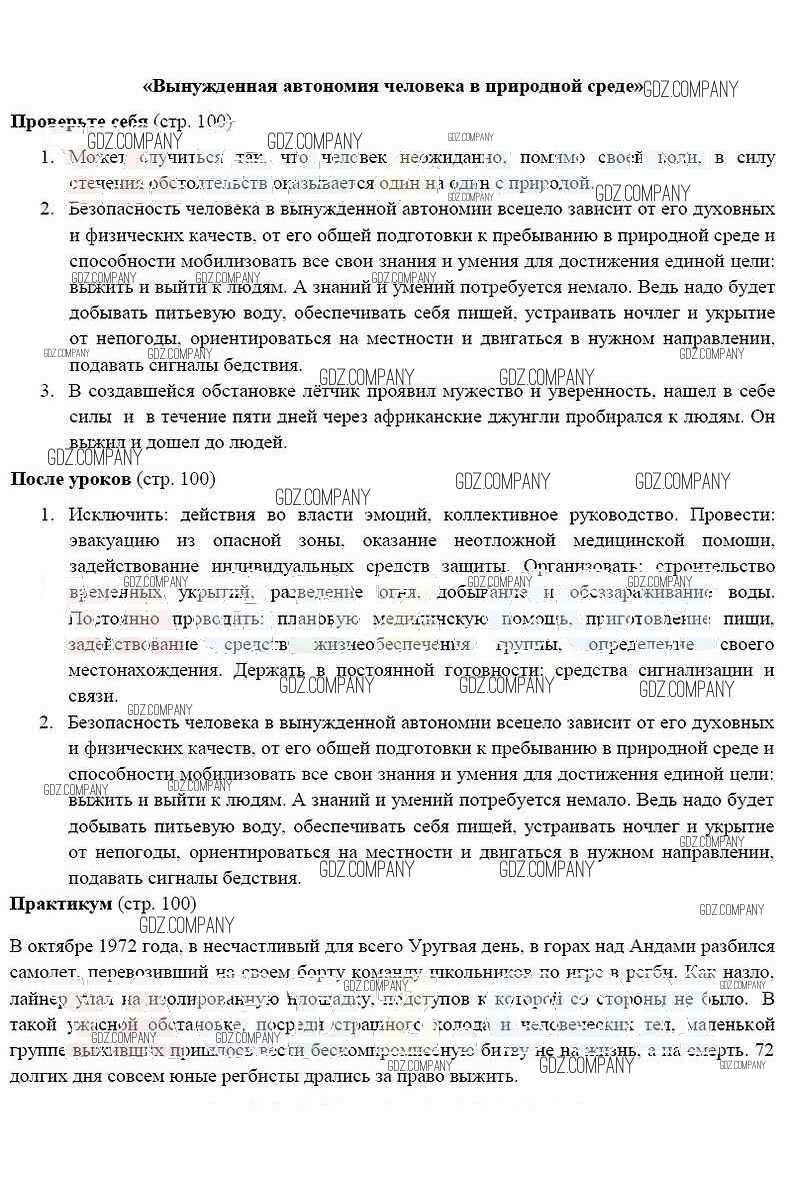 Здесь готовые ответы по ОБЖ за 6 (шестой) класс от Смирнов, Хренников Учебник (издательство: Просвещение от 2018 г.) № 100