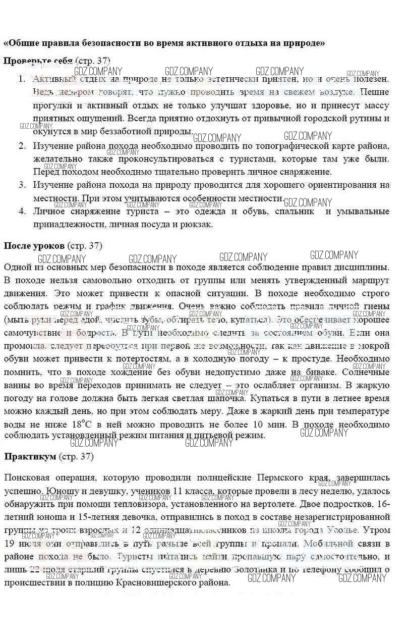 Здесь готовые ответы по ОБЖ за 6 (шестой) класс от Смирнов, Хренников Учебник (издательство: Просвещение от 2018 г.) № 37