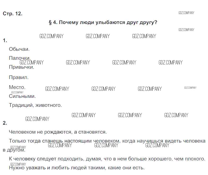 Здесь готовые ответы по Обществознанию за 6 (шестой) класс от Федорова Рабочая тетрадь Вертикаль (издательство: Дрофа от 2017 г.) № стр. 12