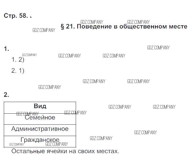 Здесь готовые ответы по Обществознанию за 6 (шестой) класс от Федорова Рабочая тетрадь Вертикаль (издательство: Дрофа от 2017 г.) № стр. 58