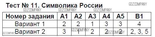 Здесь готовые ответы по Обществознанию за 6 (шестой) класс от Поздеева Контрольно-измерительные материалы (КИМ) (издательство: ВАКО от 2017 г.) № Тест №11. Символика России