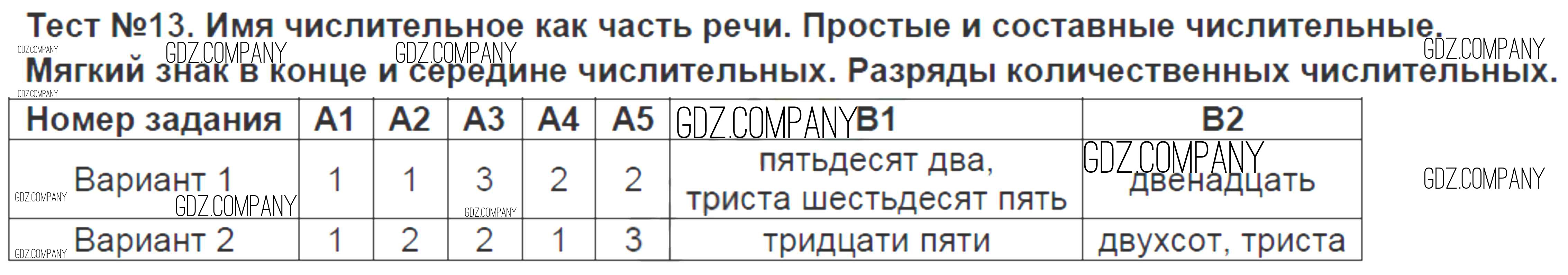 Здесь готовые ответы по Русскому языку за 6 (шестой) класс от Аксенова Контрольно-измерительные материалы (КИМ) (издательство: Экзамен от 2014 г.) № Тест-13. Имя числительное как часть речи. Простые и составные числительные