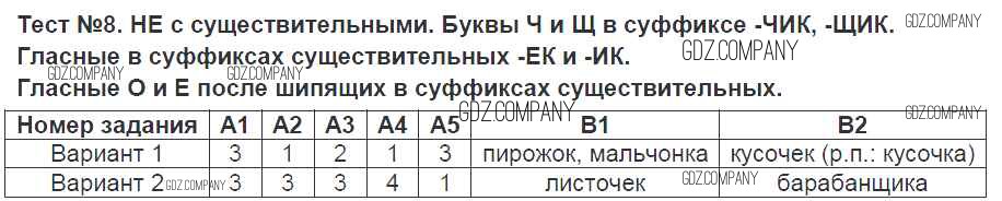 Здесь готовые ответы по Русскому языку за 6 (шестой) класс от Аксенова Контрольно-измерительные материалы (КИМ) (издательство: Экзамен от 2014 г.) № Тест-8. НЕ с существительными. Буквы Ч и Щ в суффиксе -ЧИК, -ЩИК