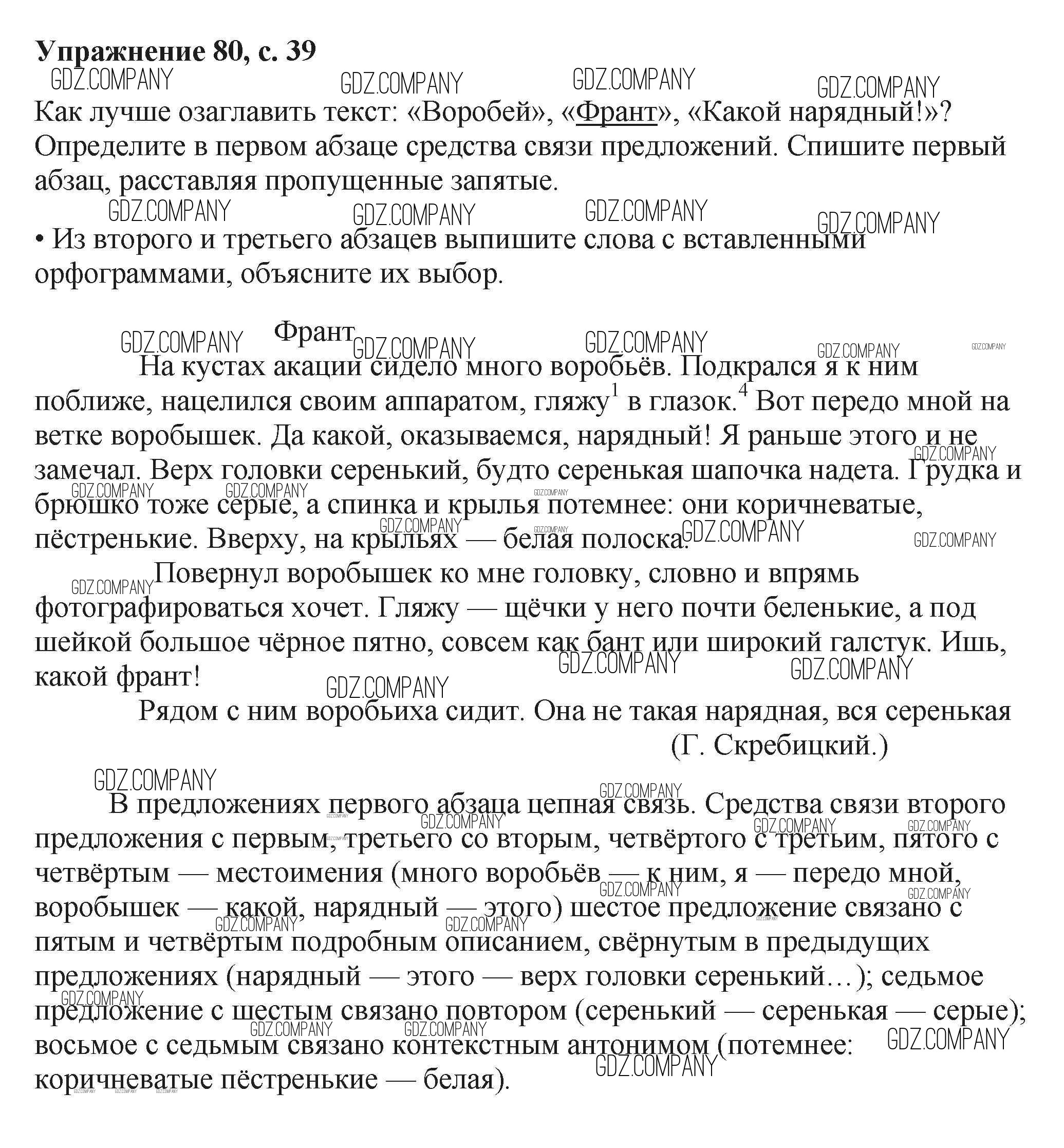 Здесь готовые ответы по Русскому языку за 6 (шестой) класс от Баранов, Ладыженская, Тростенцова, Григорян, Кулибаба Учебник (издательство: Просвещение от 2015 г.) № 80