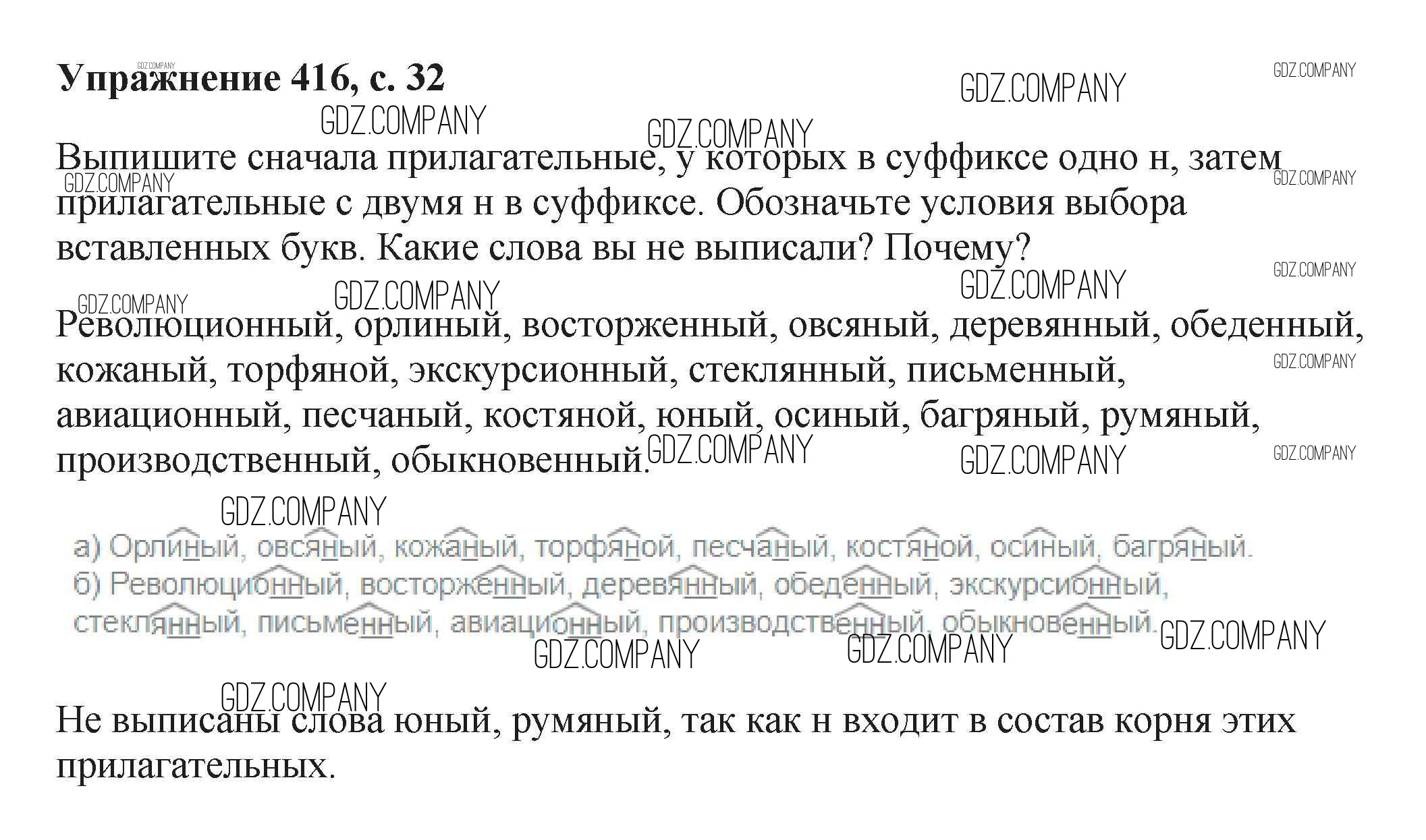Здесь готовые ответы по Русскому языку за 6 (шестой) класс от Баранов, Ладыженская, Тростенцова, Григорян, Кулибаба Учебник (издательство: Просвещение от 2015 г.) № 416
