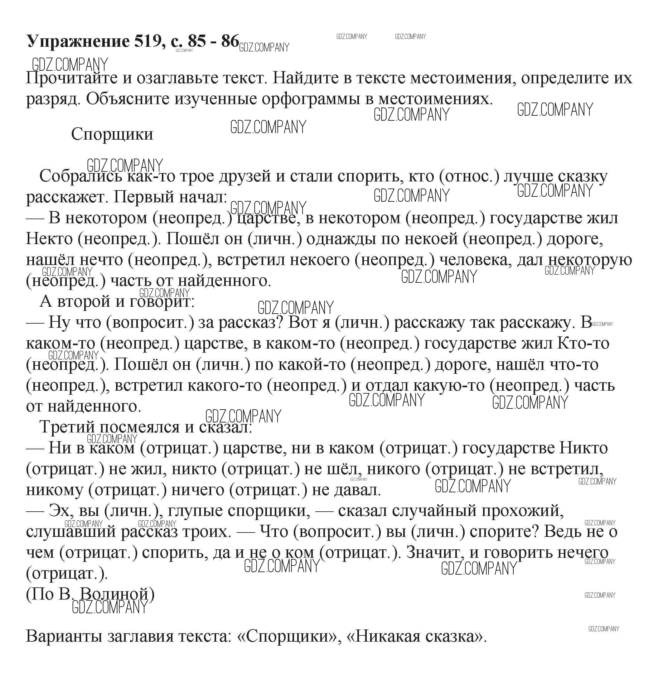 Здесь готовые ответы по Русскому языку за 6 (шестой) класс от Баранов, Ладыженская, Тростенцова, Григорян, Кулибаба Учебник (издательство: Просвещение от 2015 г.) № 519