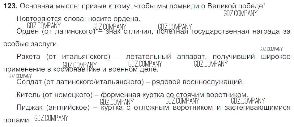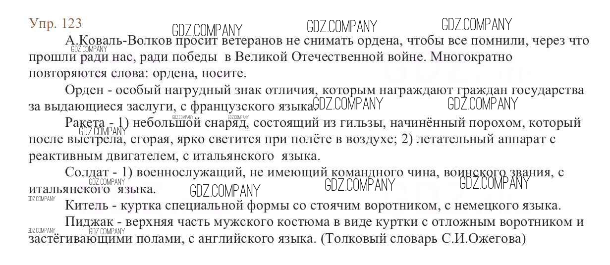 Здесь готовые ответы по Русскому языку за 6 (шестой) класс от Баранов, Ладыженская, Тростенцова, Григорян, Кулибаба Учебник (издательство: Просвещение от 2015 г.) № 123