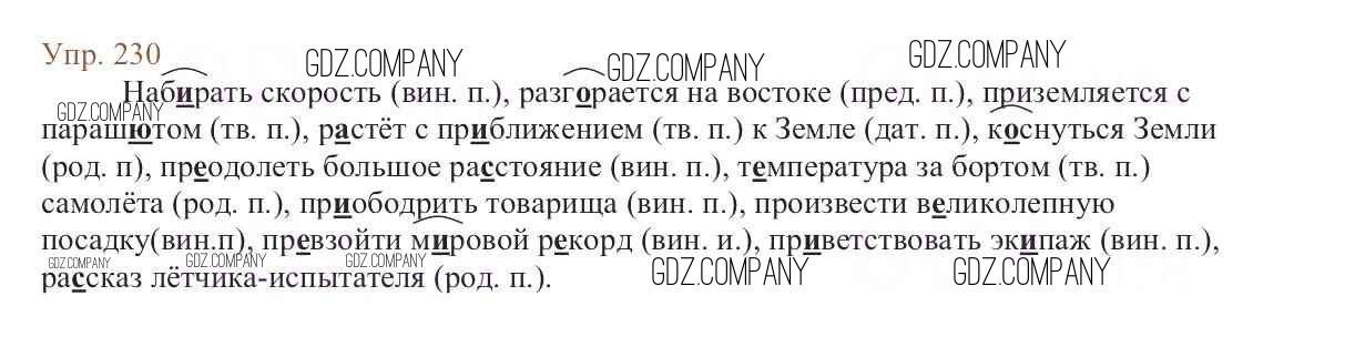 Здесь готовые ответы по Русскому языку за 6 (шестой) класс от Баранов, Ладыженская, Тростенцова, Григорян, Кулибаба Учебник (издательство: Просвещение от 2015 г.) № 230
