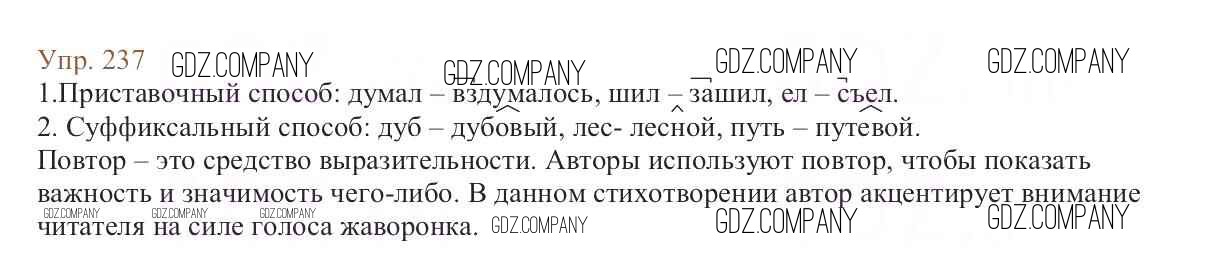 Здесь готовые ответы по Русскому языку за 6 (шестой) класс от Баранов, Ладыженская, Тростенцова, Григорян, Кулибаба Учебник (издательство: Просвещение от 2015 г.) № 237