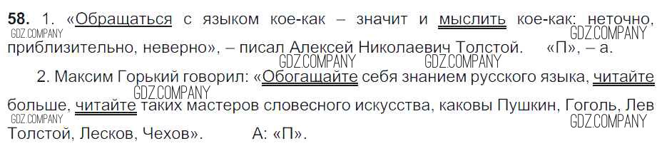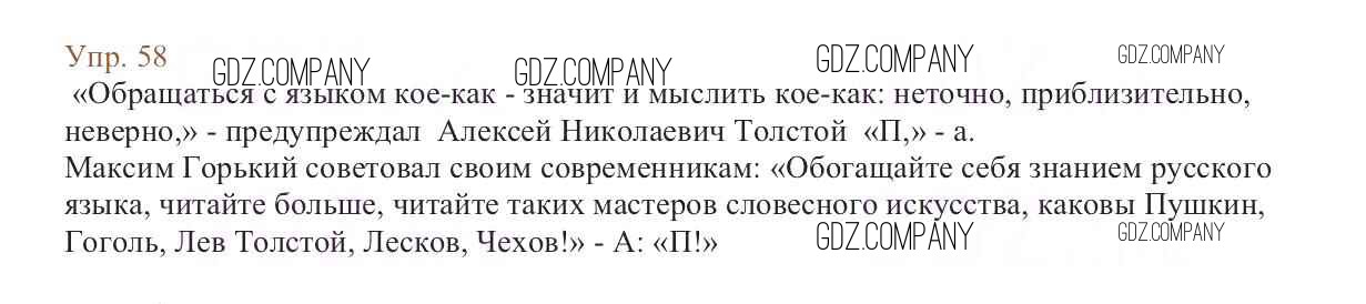 Здесь готовые ответы по Русскому языку за 6 (шестой) класс от Баранов, Ладыженская, Тростенцова, Григорян, Кулибаба Учебник (издательство: Просвещение от 2015 г.) № 58