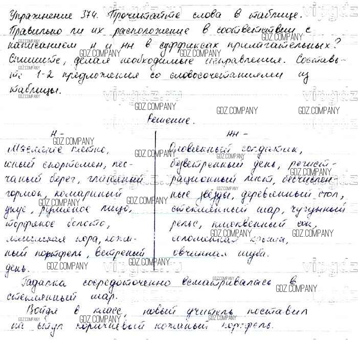 Здесь готовые ответы по Русскому языку за 6 (шестой) класс от Баранов, Ладыженская, Тростенцова, Григорян, Кулибаба Учебник (издательство: Просвещение от 2015 г.) № 374