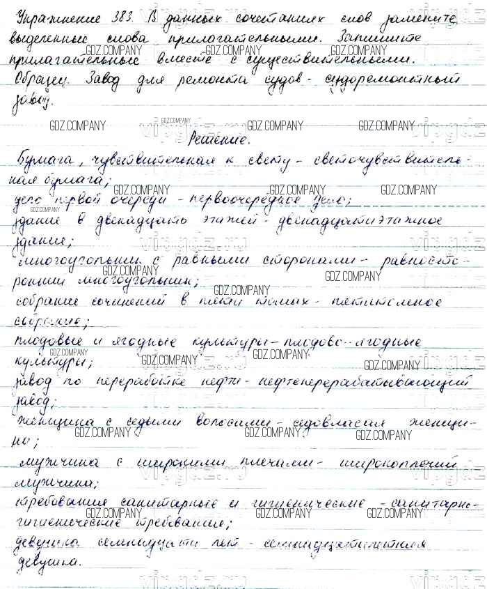 Здесь готовые ответы по Русскому языку за 6 (шестой) класс от Баранов, Ладыженская, Тростенцова, Григорян, Кулибаба Учебник (издательство: Просвещение от 2015 г.) № 383