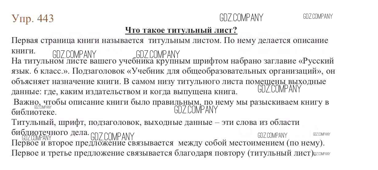 Здесь готовые ответы по Русскому языку за 6 (шестой) класс от Баранов, Ладыженская, Тростенцова, Григорян, Кулибаба Учебник (издательство: Просвещение от 2015 г.) № 443