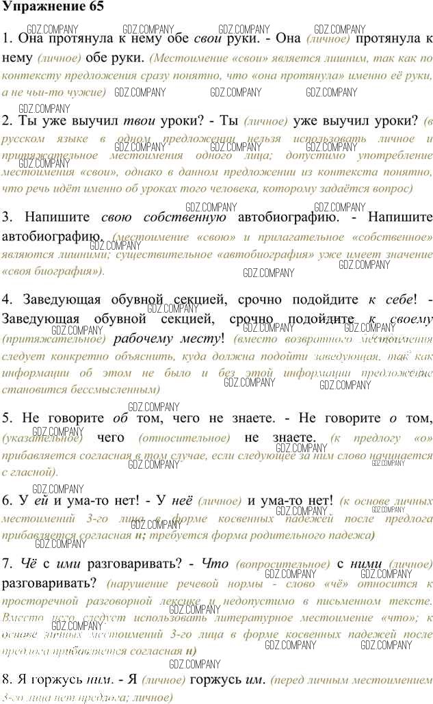 Здесь готовые ответы по Русскому языку за 6 (шестой) класс от Быстрова, Кибирева, Гостева Учебник Инновационная школа (издательство: Русское слово от 2016 г.) № 65