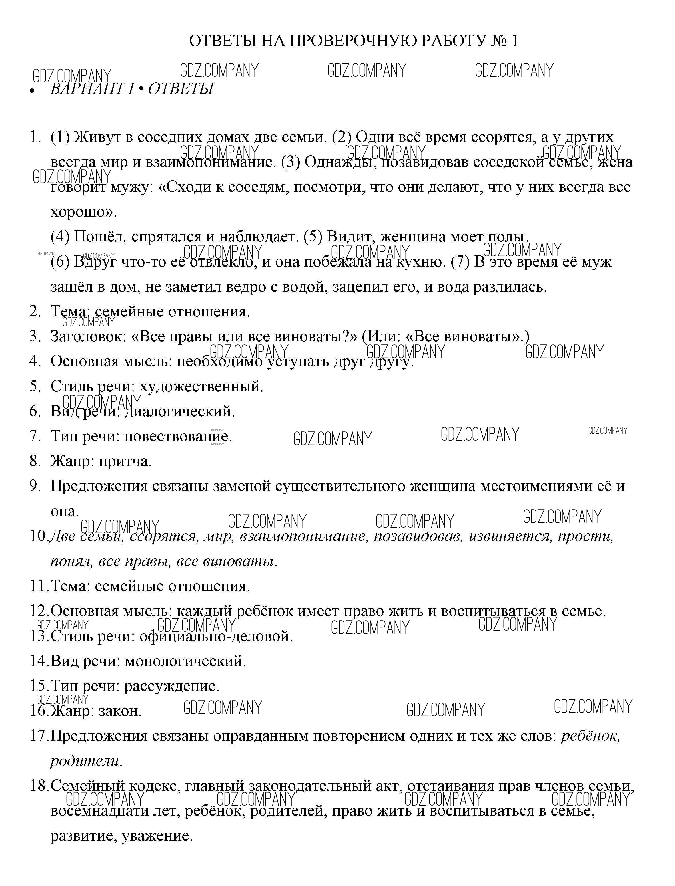 Здесь готовые ответы по Русскому языку за 6 (шестой) класс от Егорова Проверочные работы (издательство: Просвещение от 2018 г.) № 1
