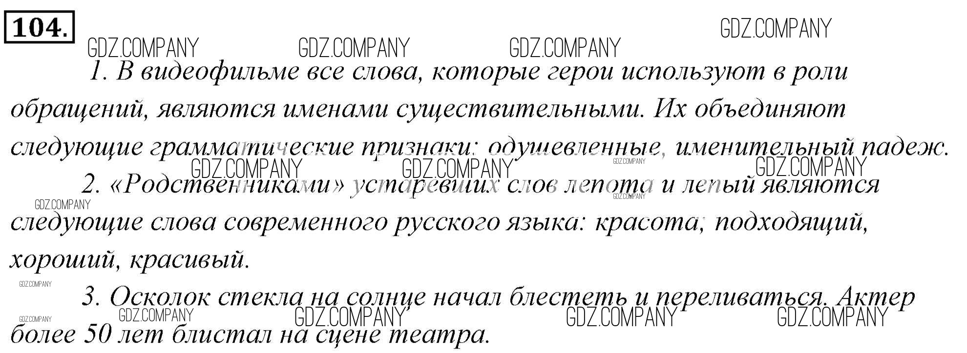Здесь готовые ответы по Русскому языку за 6 (шестой) класс от Львова, Львов Учебник (издательство: Мнемозина от 2013 г.) № 104