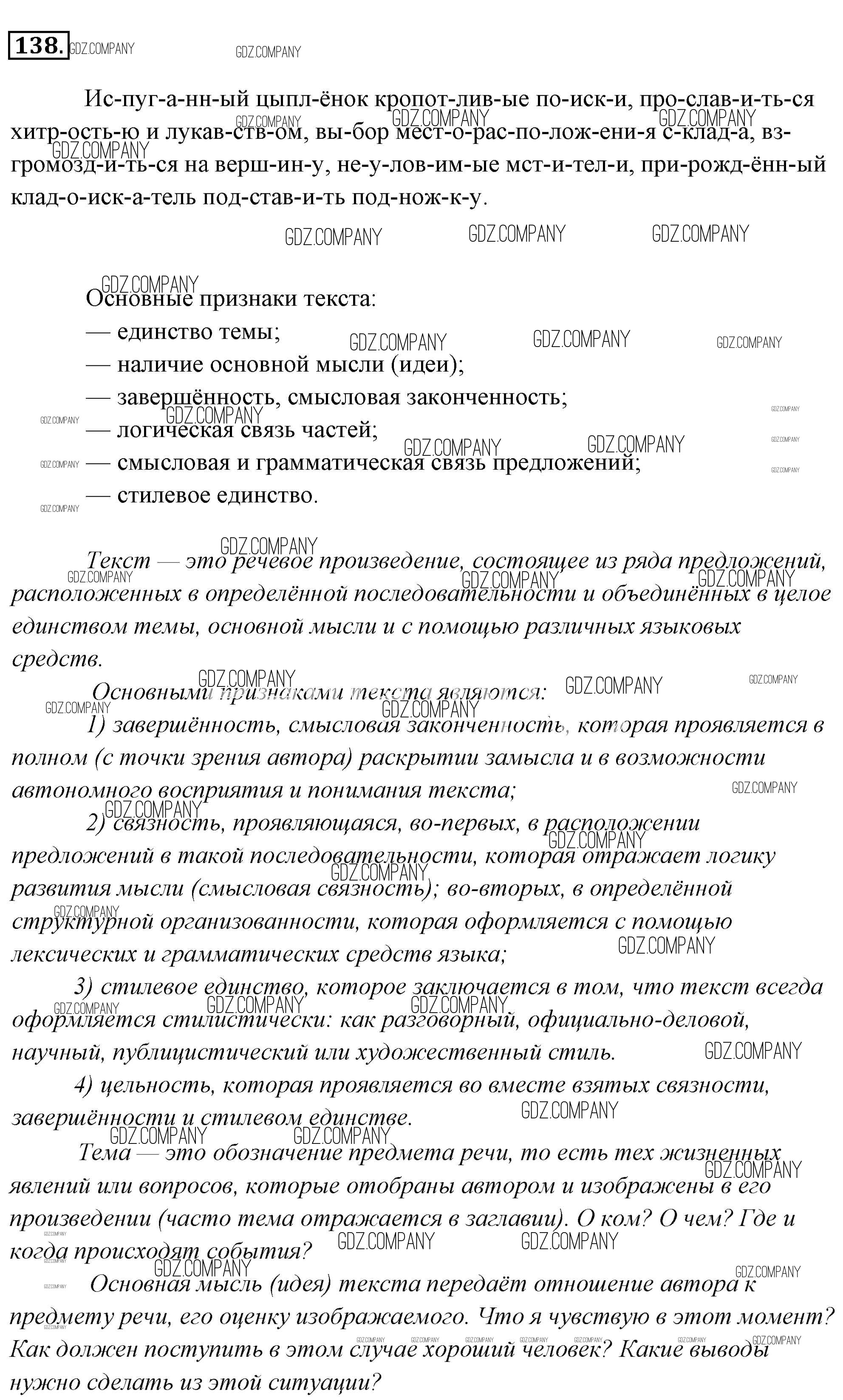Здесь готовые ответы по Русскому языку за 6 (шестой) класс от Львова, Львов Учебник (издательство: Мнемозина от 2013 г.) № 138