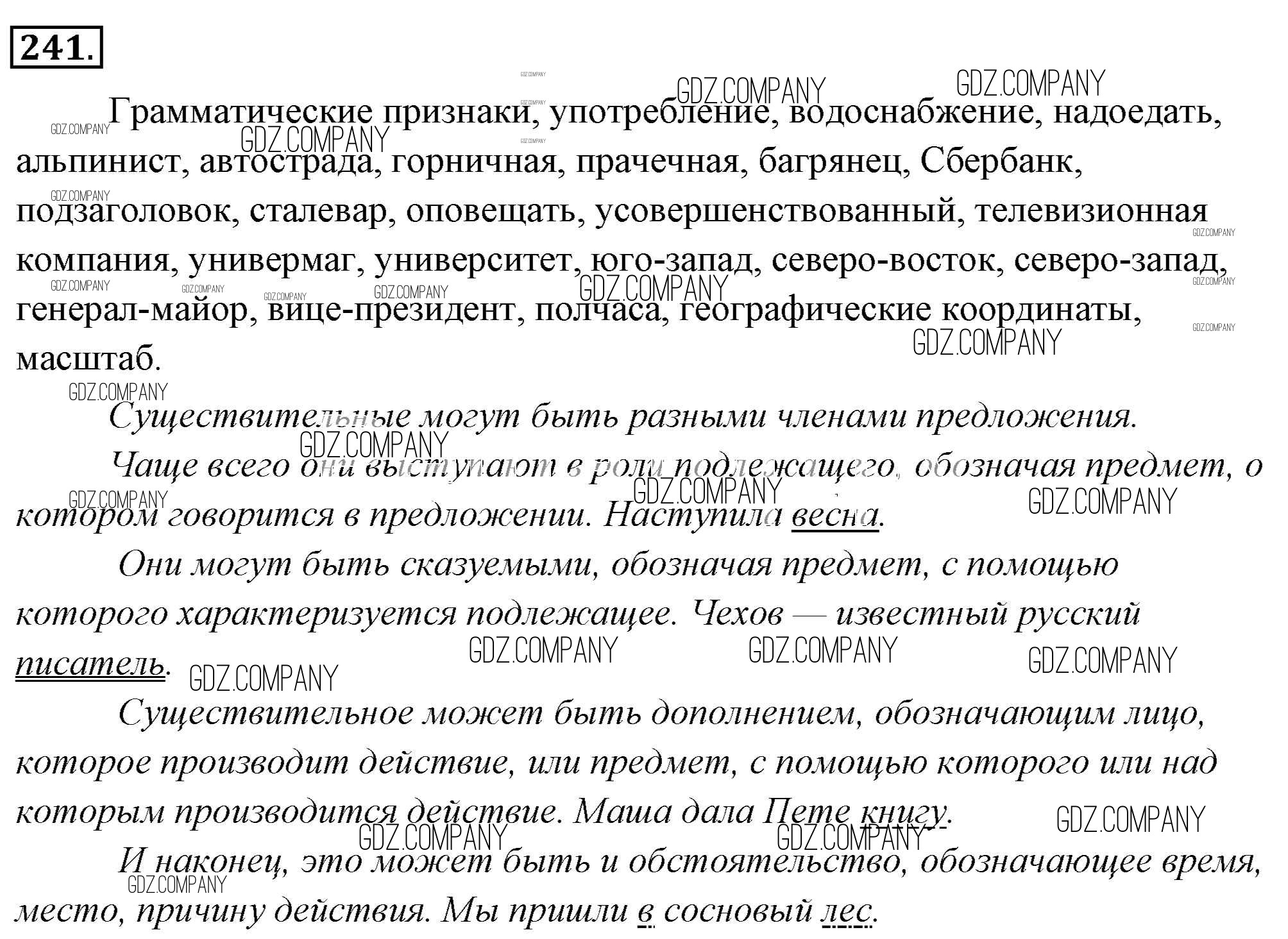 Здесь готовые ответы по Русскому языку за 6 (шестой) класс от Львова, Львов Учебник (издательство: Мнемозина от 2013 г.) № 241