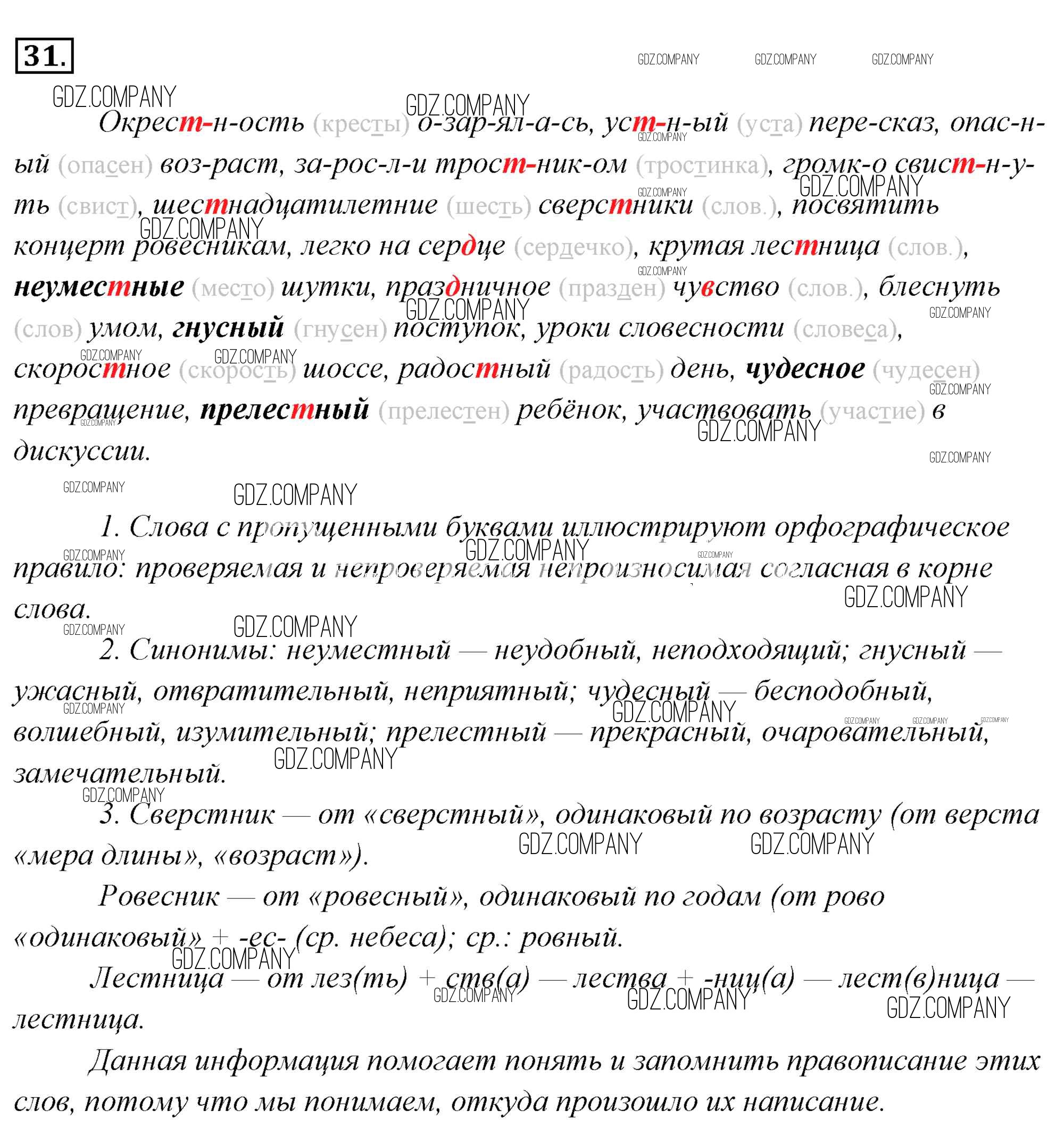 Здесь готовые ответы по Русскому языку за 6 (шестой) класс от Львова, Львов Учебник (издательство: Мнемозина от 2013 г.) № 31