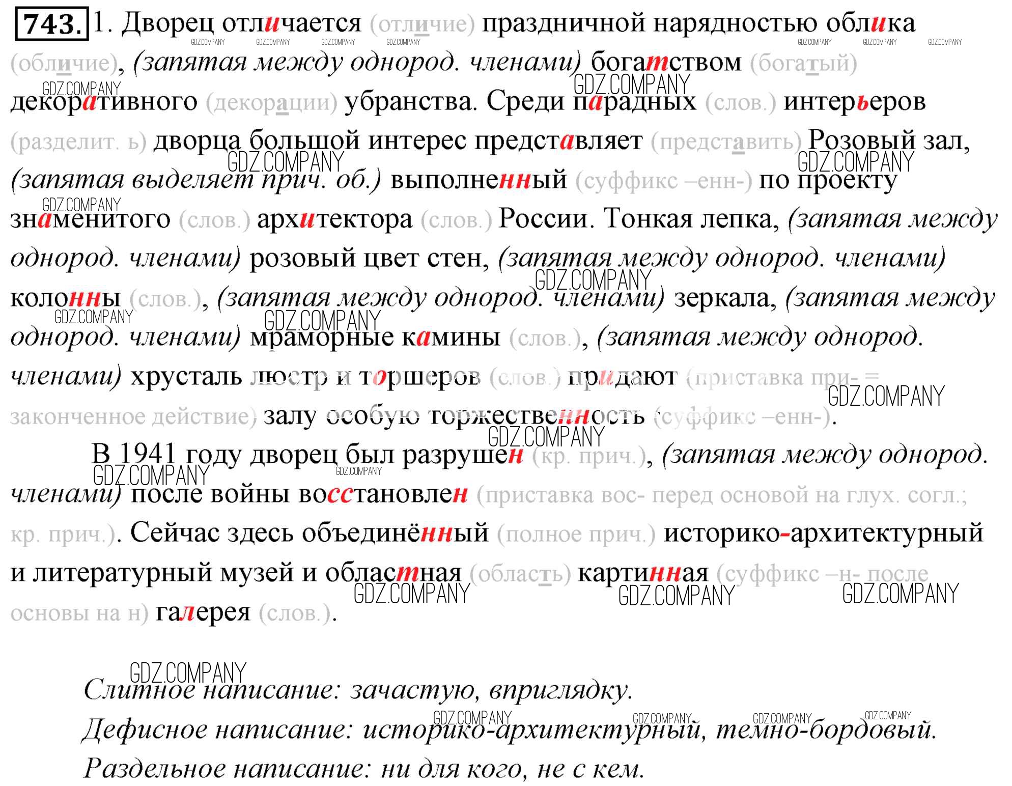 Здесь готовые ответы по Русскому языку за 6 (шестой) класс от Львова, Львов Учебник (издательство: Мнемозина от 2013 г.) № 743