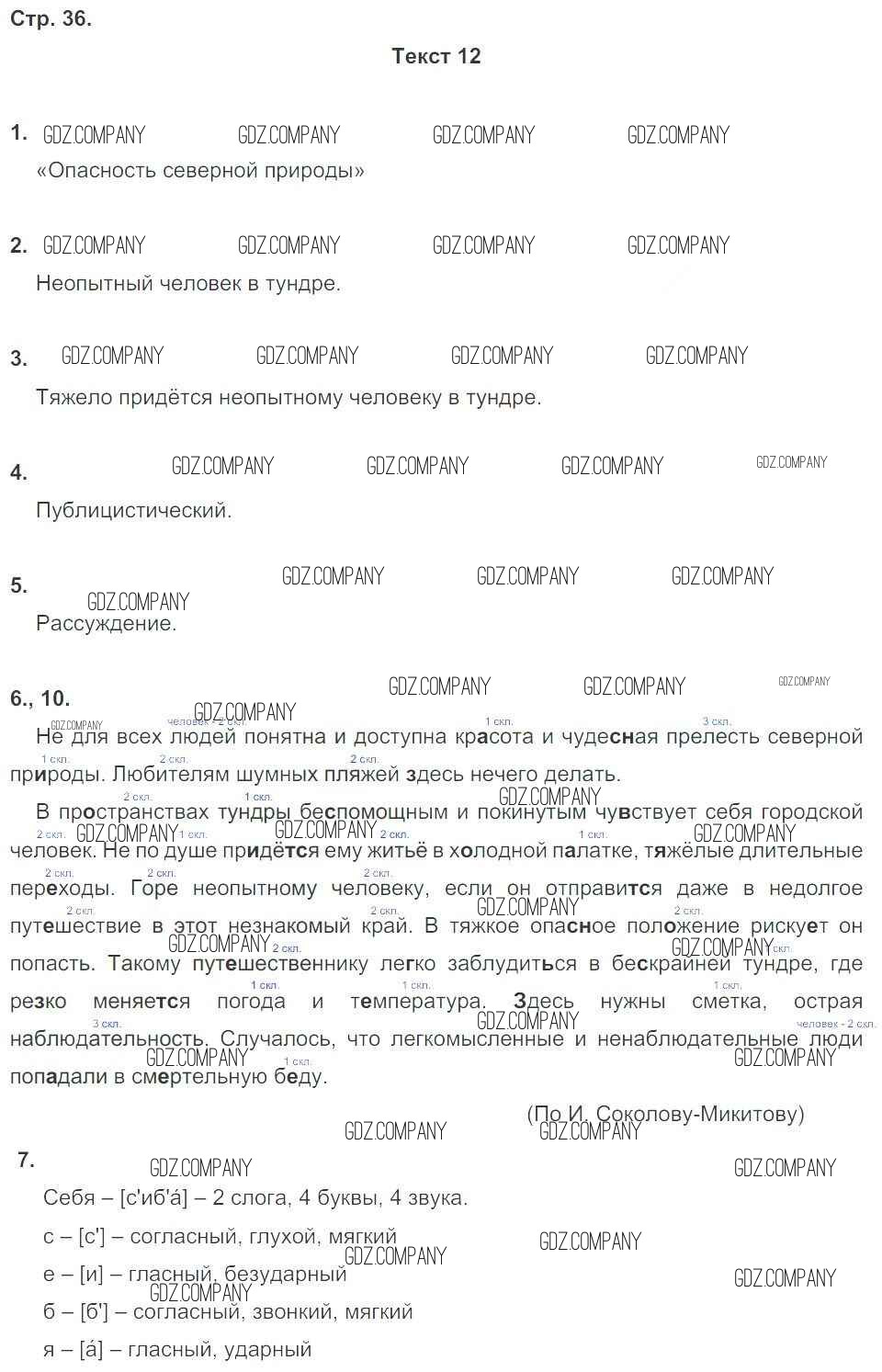 Здесь готовые ответы по Русскому языку за 6 (шестой) класс от Малюшкин Комплексный анализ текста (Рабочая тетрадь) (издательство: Сфера от 2014 г.) № 36
