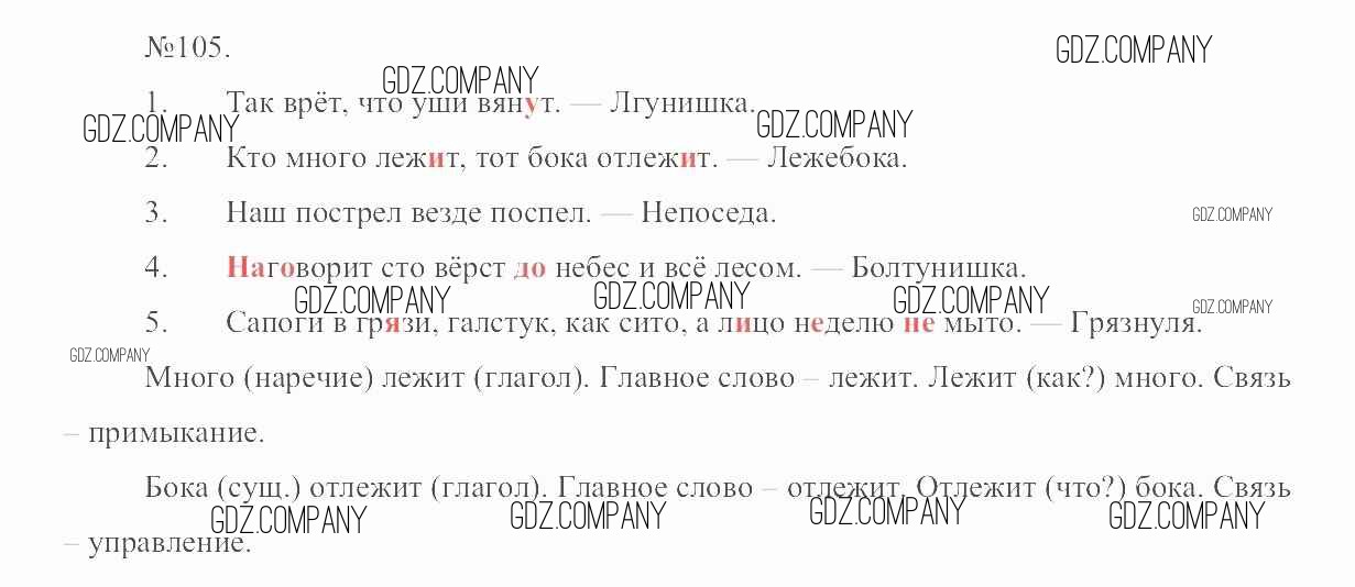 Здесь готовые ответы по Русскому языку за 6 (шестой) класс от Разумовская, Львова, Капинос, Львов, Соловейчик, Сергеева, Тронина Учебник Вертикаль (издательство: Дрофа от 2016 г.) № 105