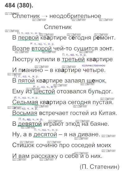 Здесь готовые ответы по Русскому языку за 6 (шестой) класс от Рыбченкова, Александрова, Загоровская, Нарушевич Учебник (издательство: Просвещение от 2016 г.) № 484