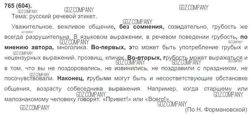 Здесь готовые ответы по Русскому языку за 6 (шестой) класс от Рыбченкова, Александрова, Загоровская, Нарушевич Учебник (издательство: Просвещение от 2016 г.) № 765