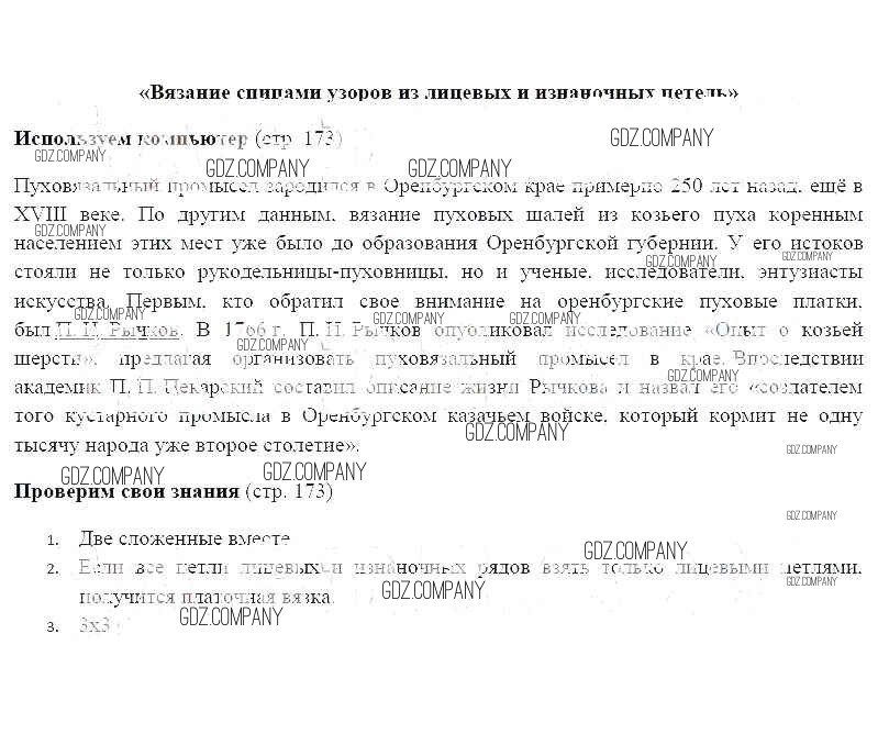 Здесь готовые ответы по Технологии за 6 (шестой) класс от Синица, Симоненко Учебник Алгоритм успеха (издательство: Вентана-граф от 2019 г.) № 173